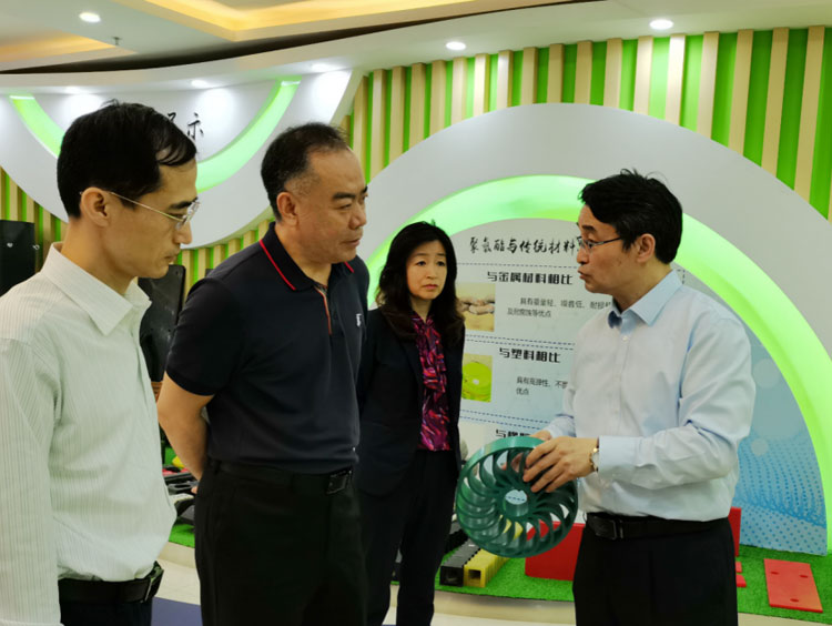 总经理张晓峰在公司展厅详细介绍了公司的发展历程、院士工作站、科技研发产品、公司未来规划等情况,详细介绍了新材料产品性能优势以及平台发展规划。